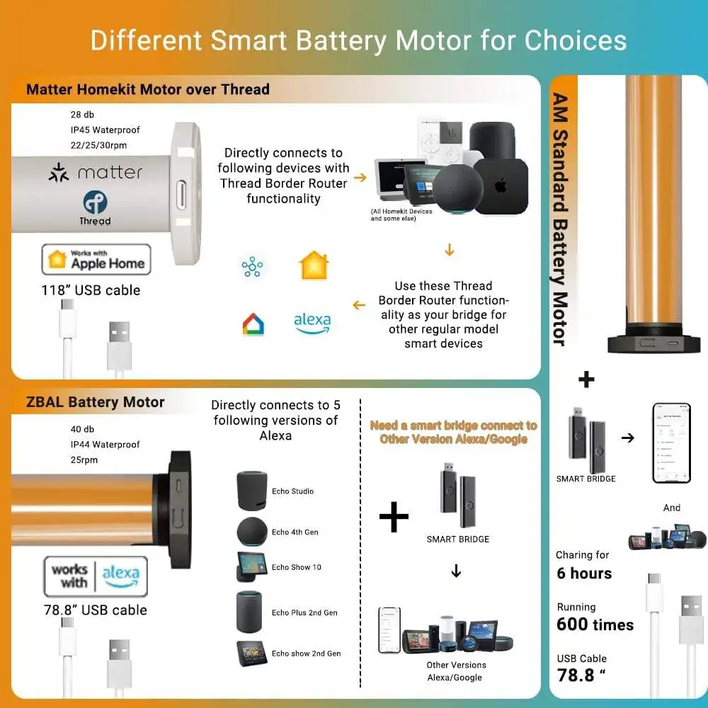 Direct Smart Home Integration (Matter/Thread) – Upgrade to the Matter/Thread motor for native Apple HomeKit, Alexa, Google Home, and SmartThings control—no bridge required. Fast, reliable, future‑proof automation.